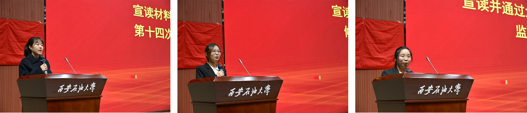 2024级团总支书记马黎宣读《半岛体育 第十四次学生代表大会选举办法》,第十三届团委副书记祁战梅宣读《半岛体育 第十四次学生代表大会学生会委员会候选委员名单》,第十三届团委副书记权禾萌宣读《大会总监票人、总计票人、监票人、计票人名单》并提交大会审议。