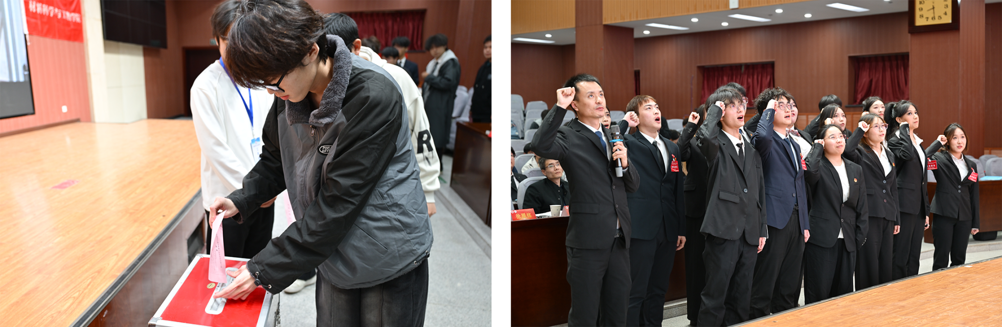 按照大会议程和选举办法,经民主投票选举,产生了半岛体育 新一届学生会委员会委员。新任团委委员和新当选的学生会委员会委员面向团旗进行了庄严宣誓。