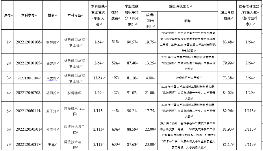 2026年本科毕业生推荐免试攻读硕士学位研究生名单公示如下: